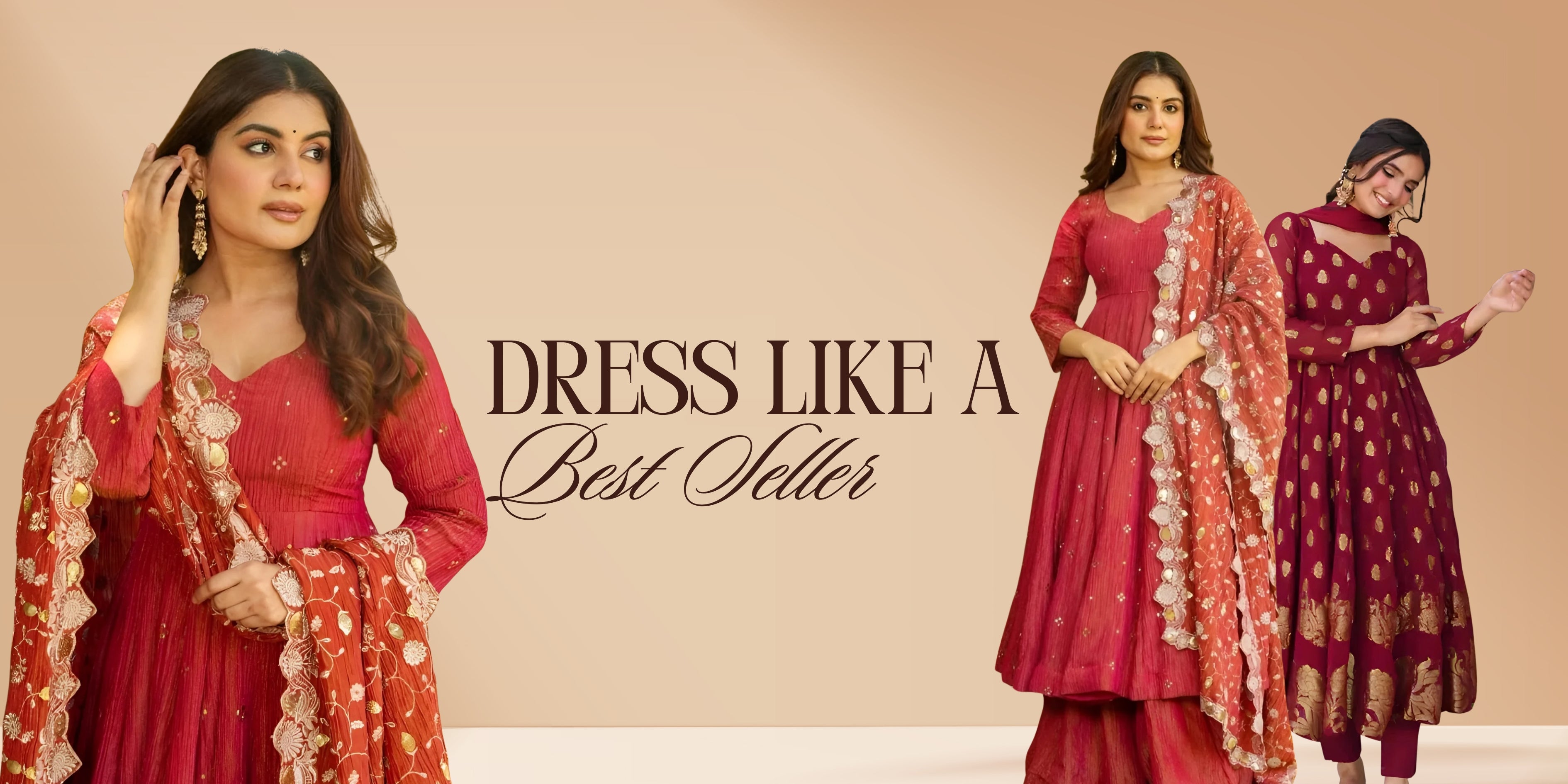 Aarohi Maroon Anarkali Suit Set with Zari & Sequins Work