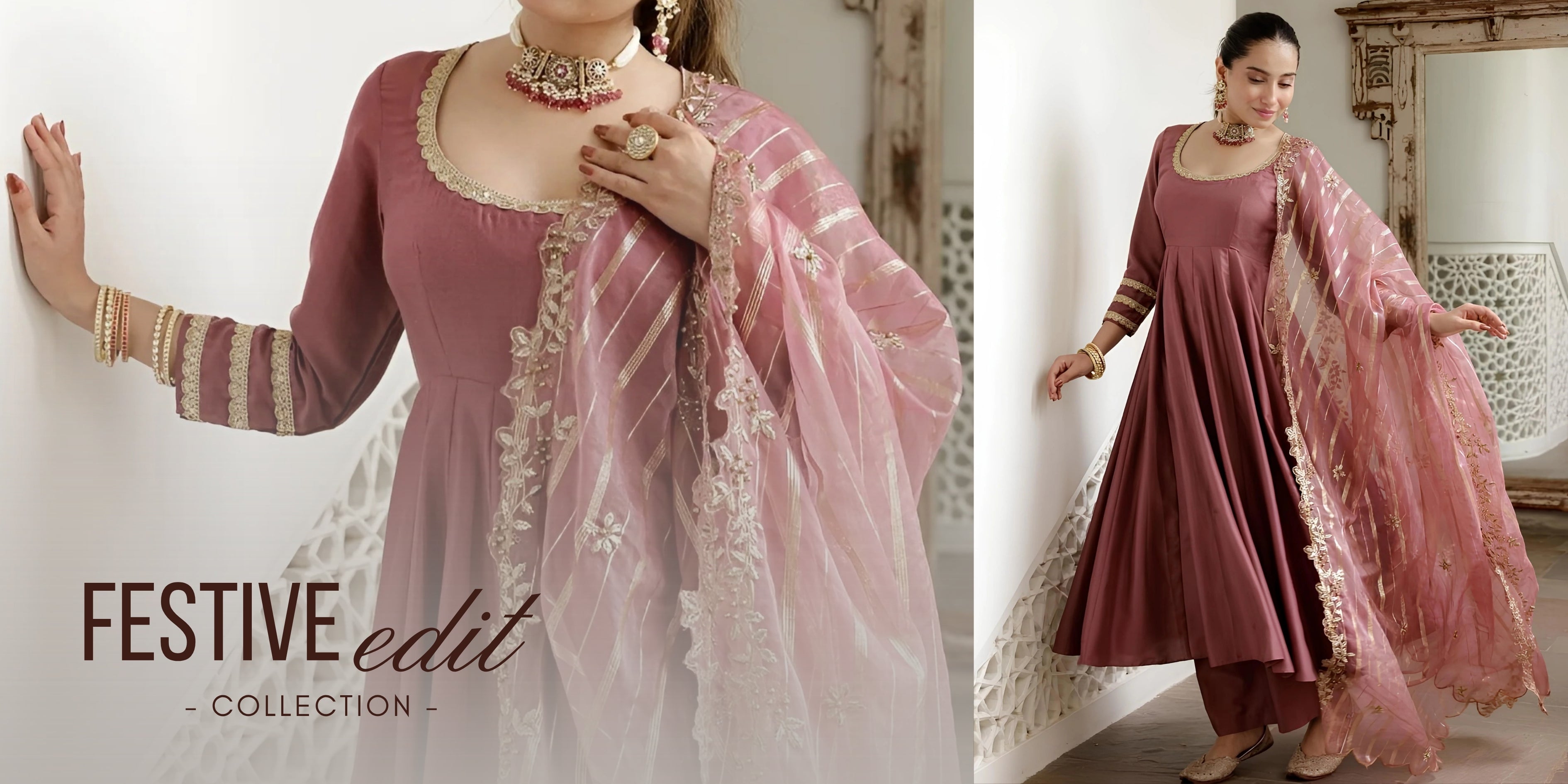 Aarohi Maroon Anarkali Suit Set with Zari & Sequins Work