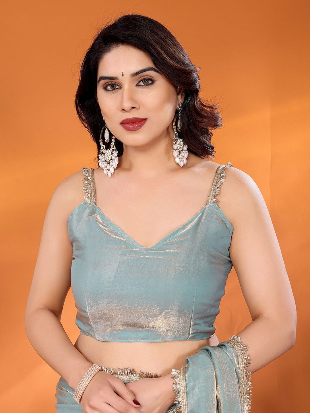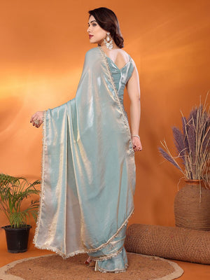 Lahariya “Sea Green Shimmer Tissue Saree” with Unstitched Blouse Shimmer Satin
