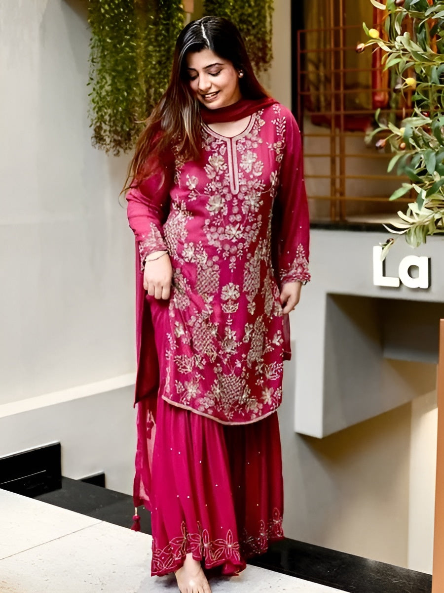 Pihu Faux Georgette Embroidery Sharara Palazzo Set