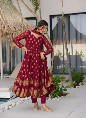 Zara Elegant Maroon Anarkali Suit with Embroidery
